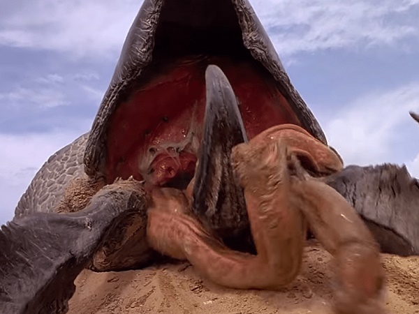 Yeah, very horrifying. I really like the build up, with the characters thinking they are being attacked by some kind of snake, only to discover that is just the creature’s tongue.