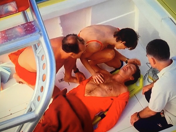 Honestly would love to know the background to this episode. Mitch is now apparently dead, which has resulted in five-minutes of lying down, followed by another montage showcasing old clips. This is bonkers, even by Baywatch standards.