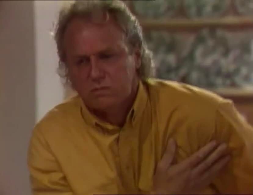 In this episode, Jim Robinson has a heart attack at home, in front of his girlfriend Fiona Hartman. Initially Fiona rushes to Jim’s aid, before heading to the phone to call an ambulance. But realising his death would have financial benefits, Fiona puts down the phone and lets Jim die on the floor.