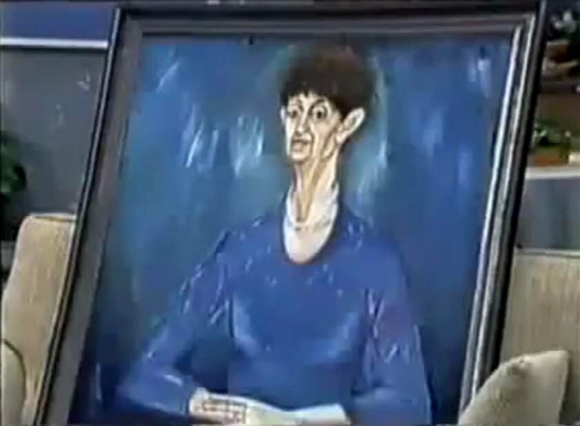 For those who missed this episode the first time around, there’s drama over a portrait of Mrs. Mangel, that has been painted by Helen Daniels. Mrs. Mangel thought the painting would be flattering, but Helen clearly had other ideas.