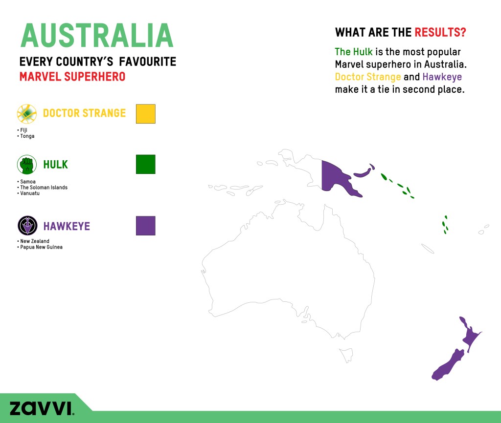 Well, according to the data, the most-searched-for superhero in Australia is not Iron Man, nor Doctor Strange, but is instead the Hulk. The green goliath, aka Dr. Bruce Banner, is the hero who is most popular amongst Aussies right now, and he ranks the highest.