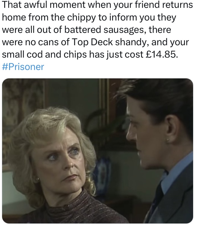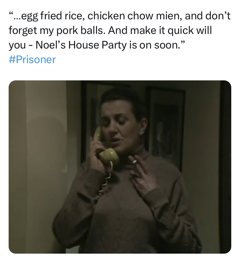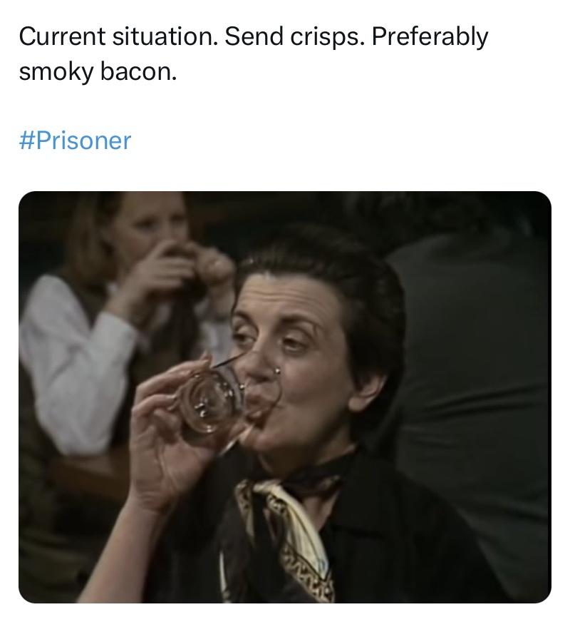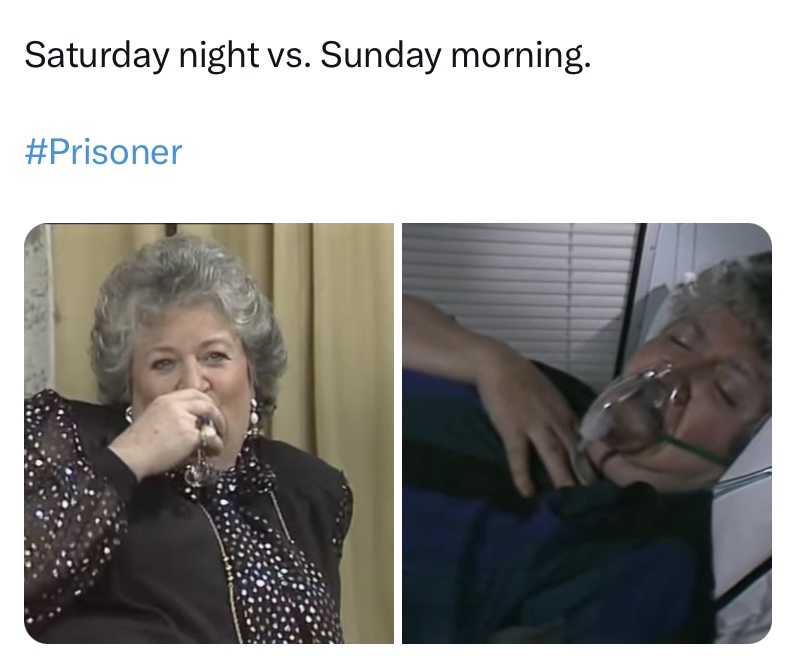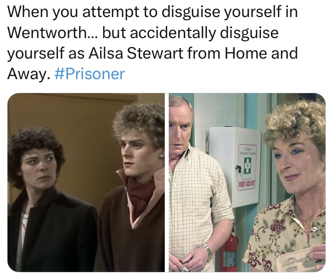 I also got a great deal of enjoyment out of the lighter elements of the series. While Prisoner delivered many hard-hitting stories, and dark content, it could be as camp as Christmas too, and in this day and age it has also become ripe for a meme or two… or three… or four!