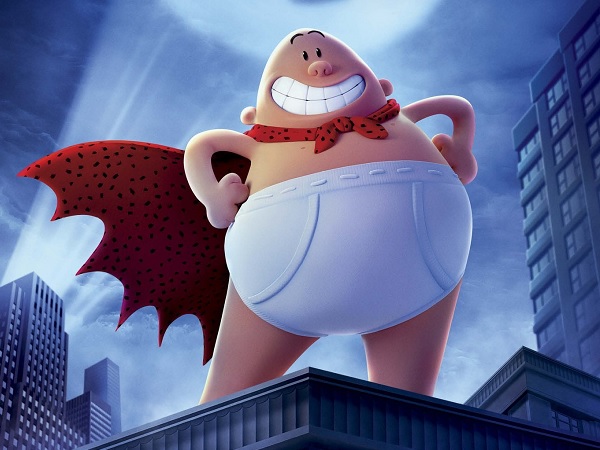 In Captain Underpants: The First Epic Movie, a humourless school principal is hypnotized into thinking he is a super hero. The movie features the voices of Kevin Hart and Ed Helms, and is based on the Captain Underpants book series.