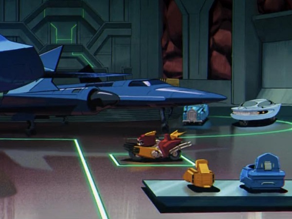 As the action switches from the X-Mansion to Muir Island, we get a quick glimpse of a storage area which contains a number of vehicles, including the X-Men’s Blackbird jet. But look closely and you’ll also see a curious looking yellow and brown motorbike with claws!