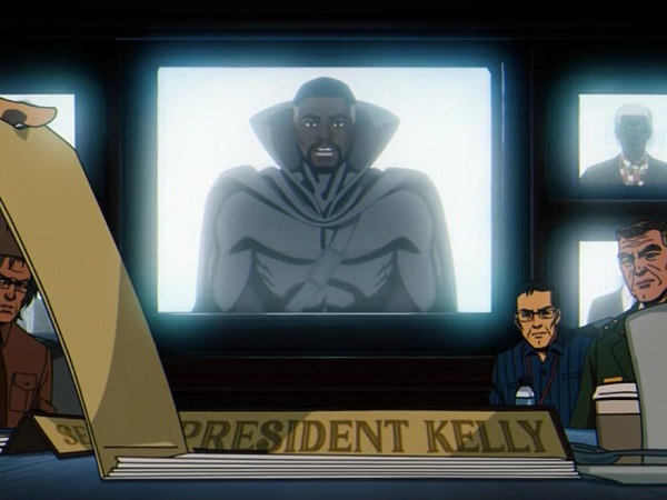As the action moves back to Earth, Black Panther and Captain America reappear for another brief cameo sequence, only this time they appear unmasked. It is here we see the identity of Black Panther is King T’Chaka, rather than his son, T’Challa.