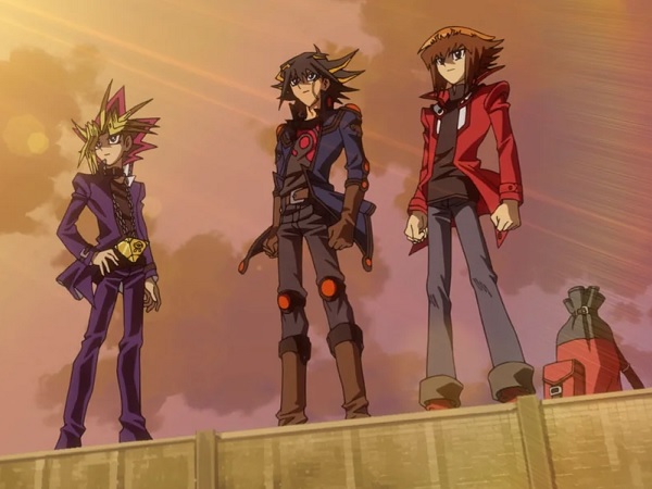 In movie three, Yu-Gi-Oh!: Bonds Beyond Time, Yugi, Jaden and Yusei travel through time to save a children’s card game. (50 mins)