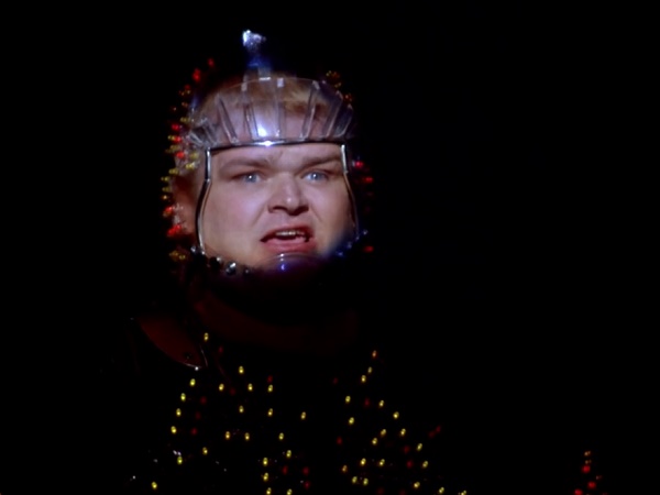During the final moments of the movie’s end credits, a voice over artist pops up to explain how to become a contestant on The Running Man. The voice over artist – calling himself Phil Hilden – suggests potential contestants should send in a self-addressed, stamped envelope “and then go out and do something really despicable.”