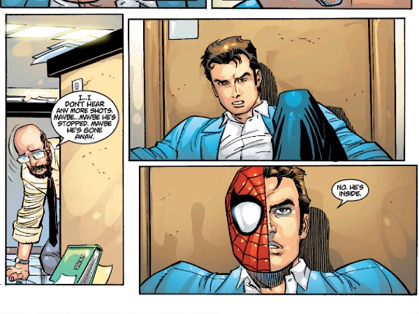 With the shooter disabled, Spider-Man is shocked to discover the shooter is another high school student. The boy had grown tired of being bullied, so decided to take matters into his own hands.