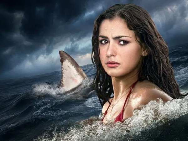 After the lead characters escape the shark-filled waters, which takes about a minute to get out of, they simply need to stay on the beach and keep away from the sea. Yet, at multiple times they both sit by the water’s edge, essentially offering themselves up as a tempting snack for the sharks.